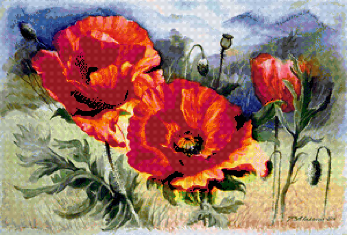 Схема вышивки «Маки» (№2167621)
