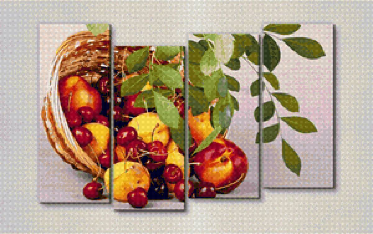 Теги: фрукты, ваза с фруктами, для кухни, натюрморт, черешня, персики, вишня.