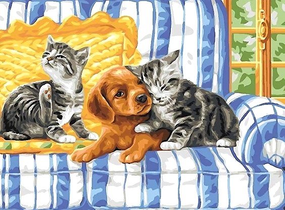 Теги: картина, друзья, собаки, кошки.