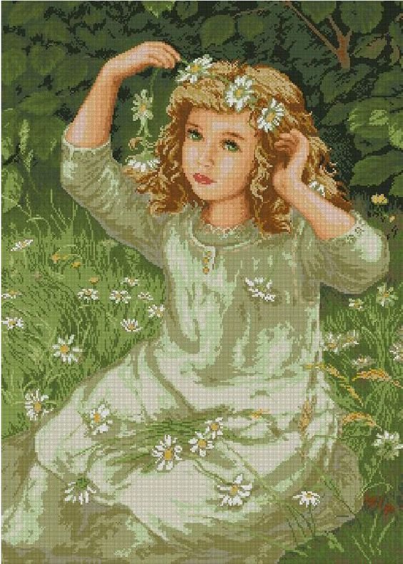Схема вышивки «Девочка в венке из ромашек» (№2185637)