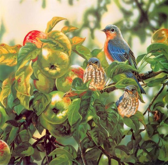 Теги: натюрморт, птицы, яблоки, природа, животные, фрукты.