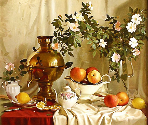 Теги: сани, пейзаж, зима, михаил сатаров, натюрморт, картина, самовар.