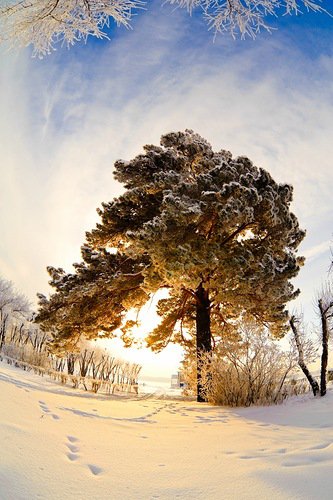 Теги: зима, снег, лес, елка, хижина, вечер, сосна.