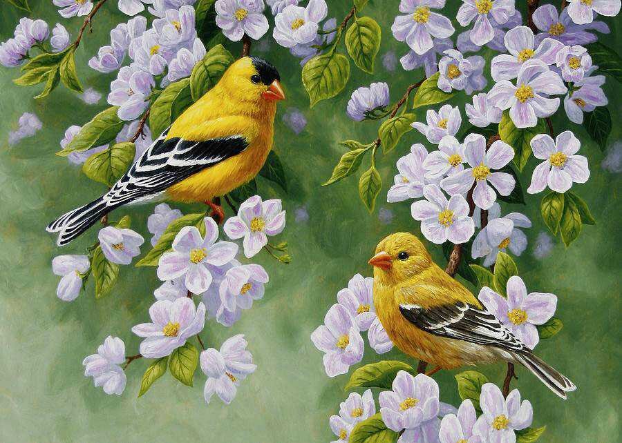 Схемы вышивки, похожие на «Желтые птички на ветвях яблони» (№2207153) по сюжету