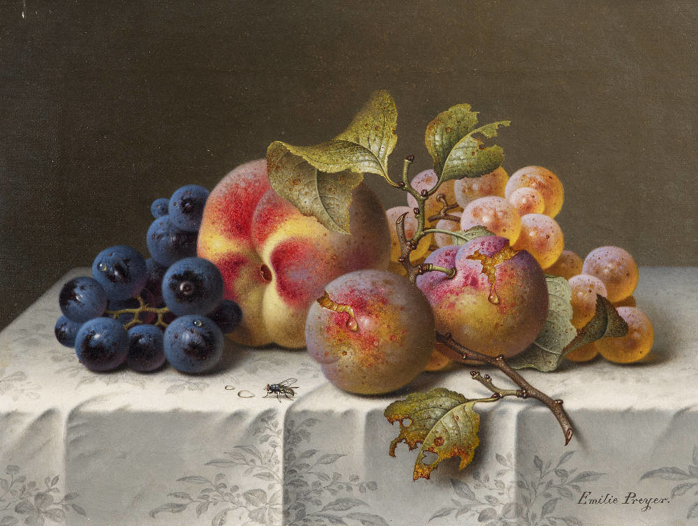 Схема вышивки «ЭМИЛИ ПРЕЙЕР. НАТЮРМОРТ С ВИНОГРАДОМ И ПЕРСИКАМИ» (№2224111)