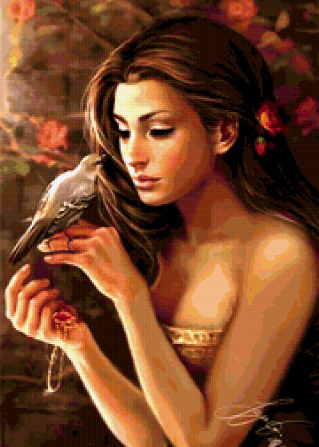 Схема вышивки «Девушка и птица» (№222588)