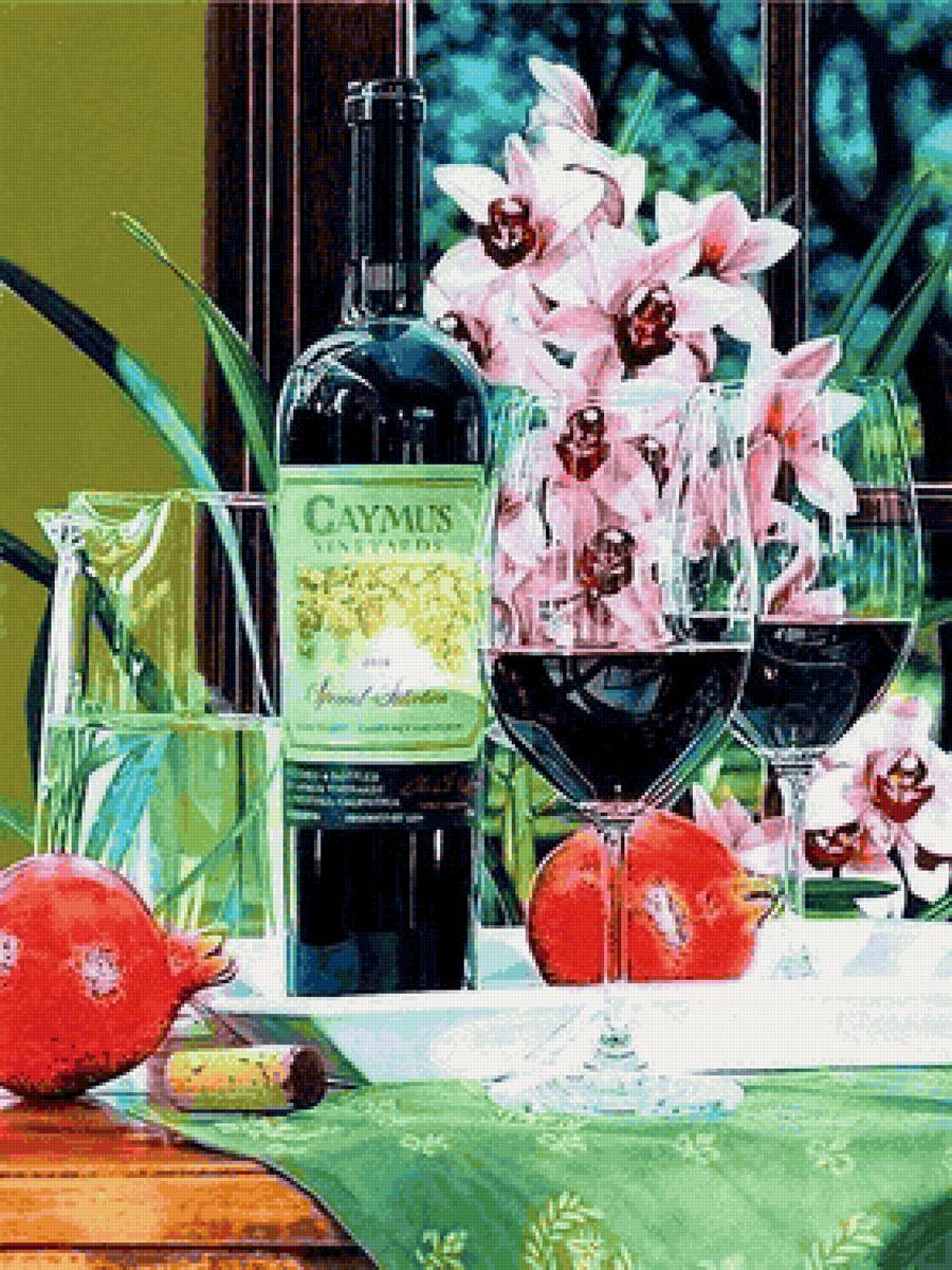 Теги: фрукты, цветы, бокал вина, вино, натюрморт.