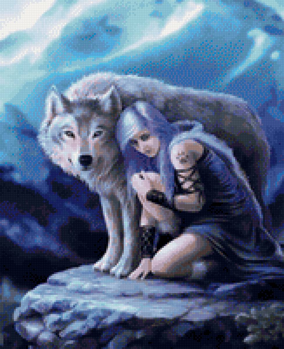 Схема вышивки «Девушка и волк» (№2233309)