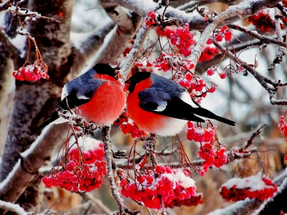 Теги: веточка, рябина, снегири, снег, зимородки, птицы, синички, зима.