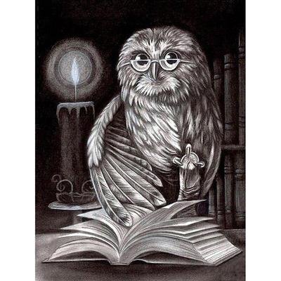 сова, свеча, библиотека, наука, книга, перо, очки