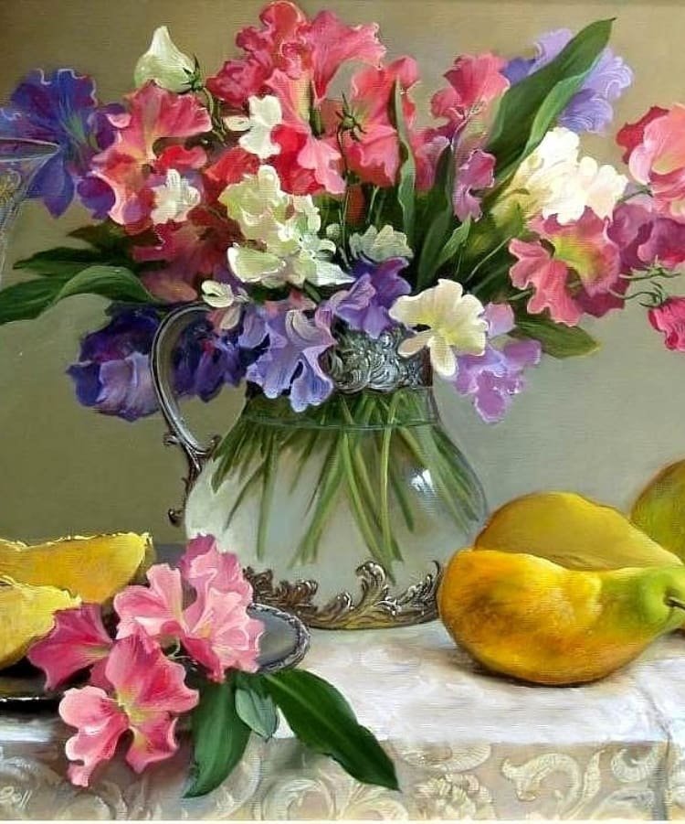 Теги: цветы, фрукты, натюрморт.