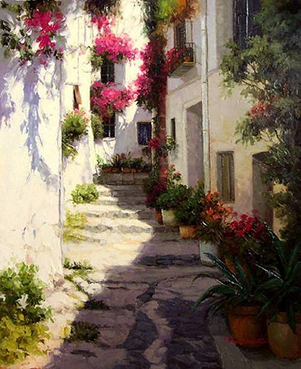 Теги: живопись, картина, город, городской пейзаж, улица, люди.