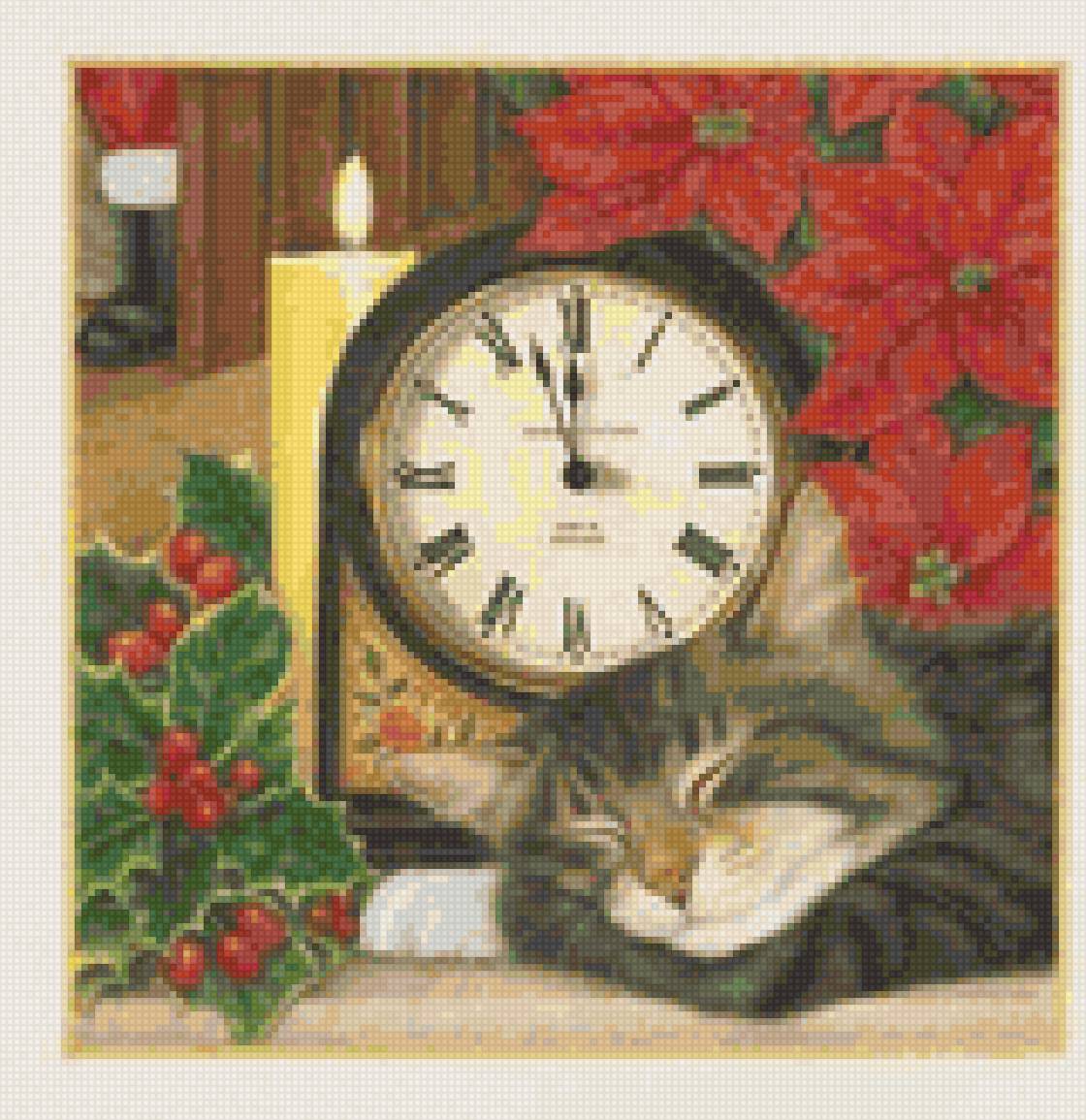 Схема вышивки «Котик и часы» (№2307367)