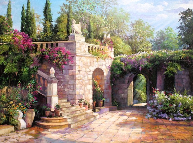 Теги: юг, закат, город, пейзаж, вечер, цветы, река, лето, живопись.