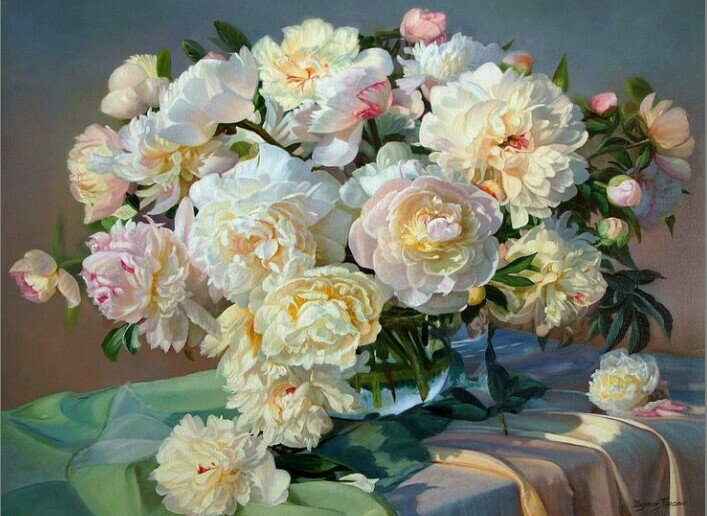 Теги: пионы, пионы на столе, пионы в вазе, букет, натюрморт.