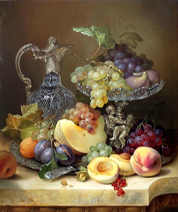 Теги: натюрморт, дыня, сливы, арбуз, виноград.