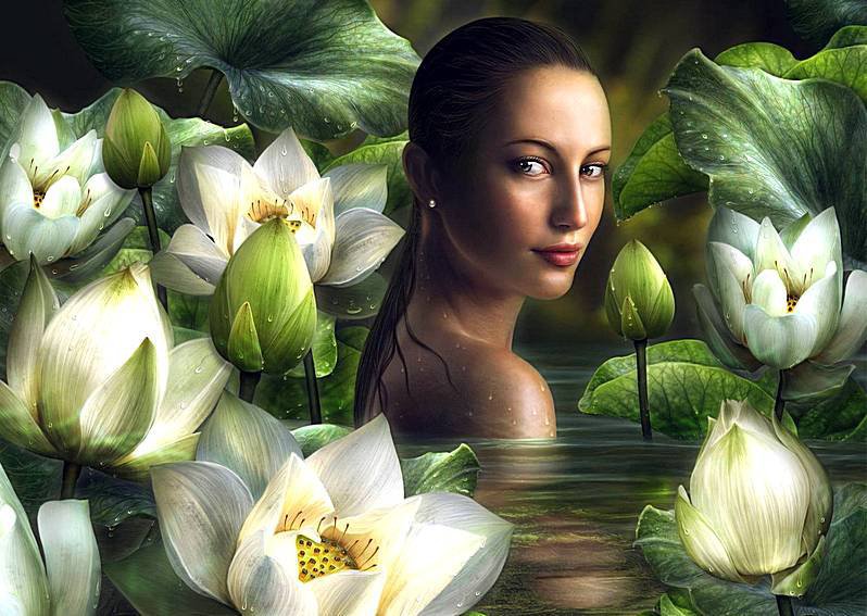 Схема вышивки «девушка и лотос» (№234118)