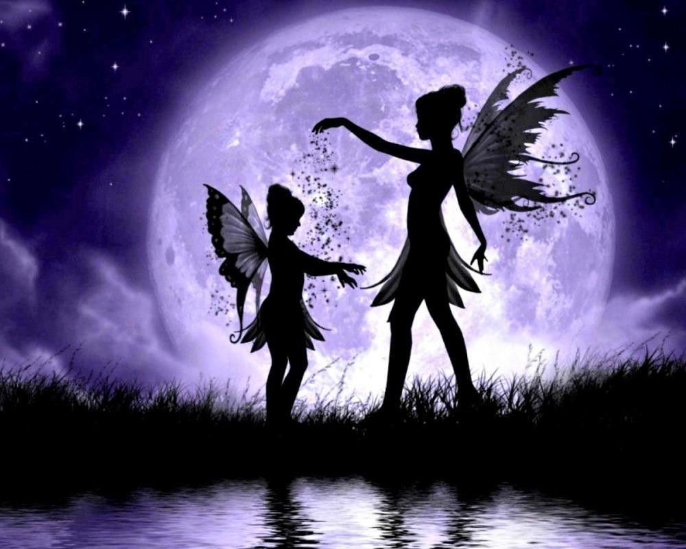 Схема вышивки «Картина с феями на фоне луны» (№2381733)