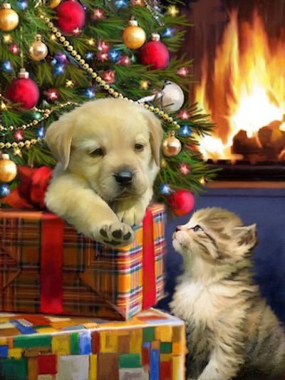 Теги: елка, шар, киса, кот, новый год, кошки, домашние животные.