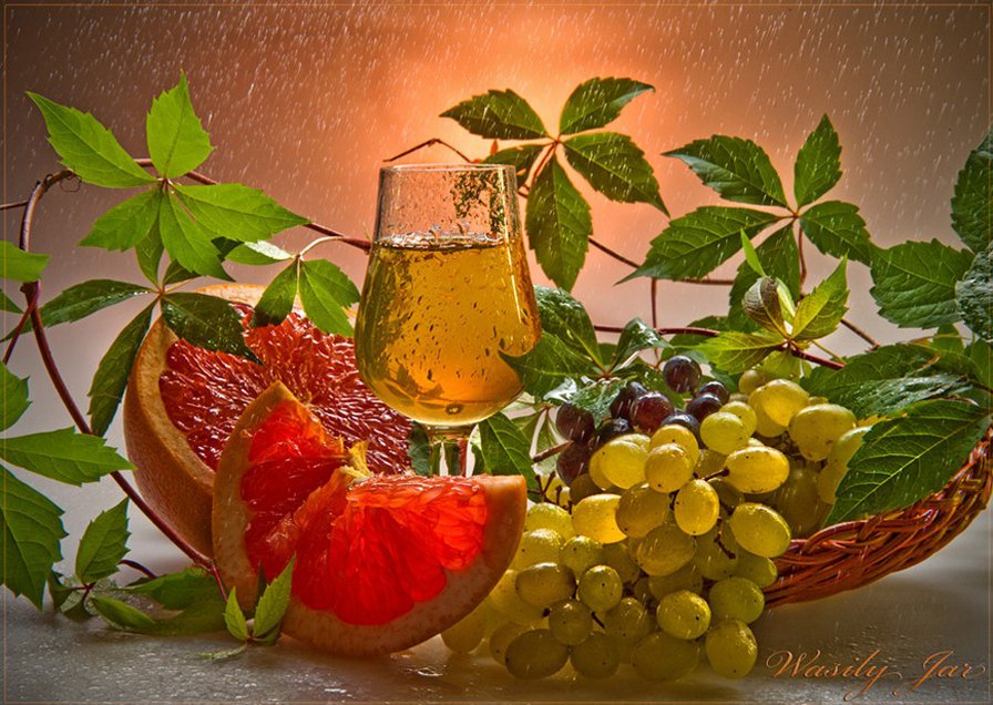 Теги: бокал вина, натюрморт, фрукты, цветы, вино.