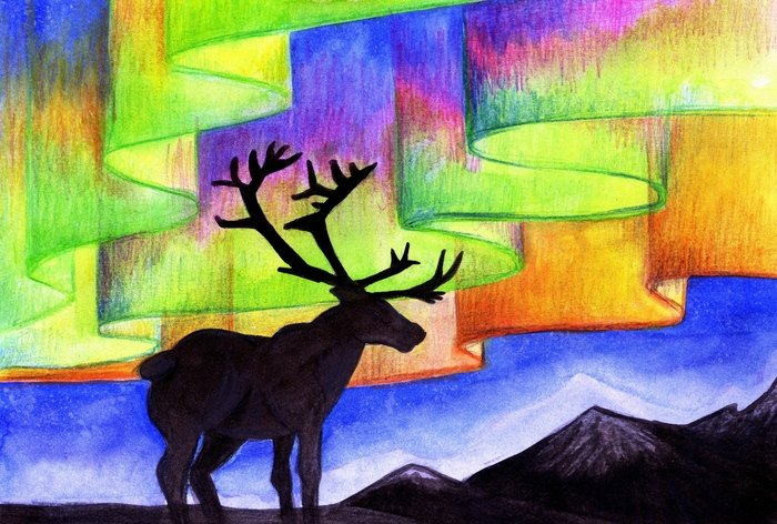 Теги: северное сияние, эскимосы, зима, олени.