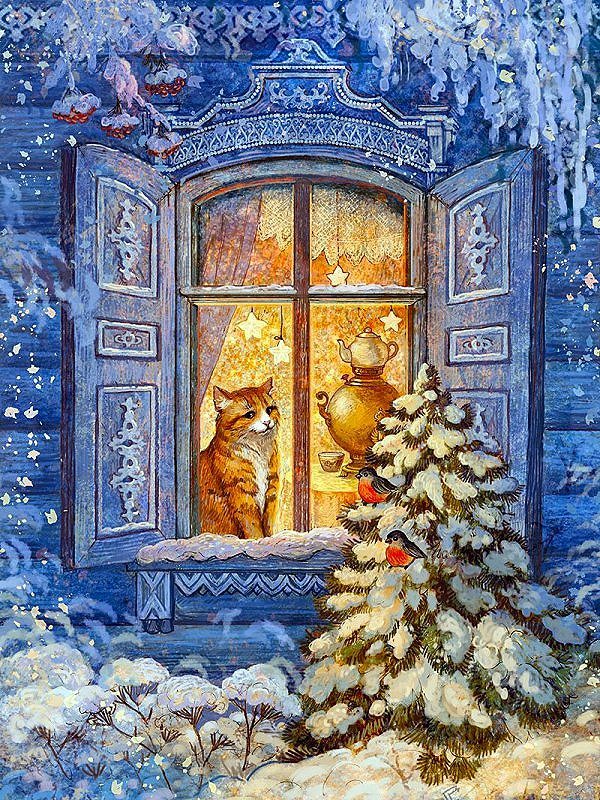 Комментарии к схеме вышивки «Котейка зимним вечером» (№2441176)