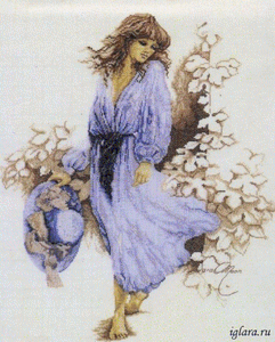 Схемы вышивки, похожие на «Девушка в голубом» (№2448196) по сюжету