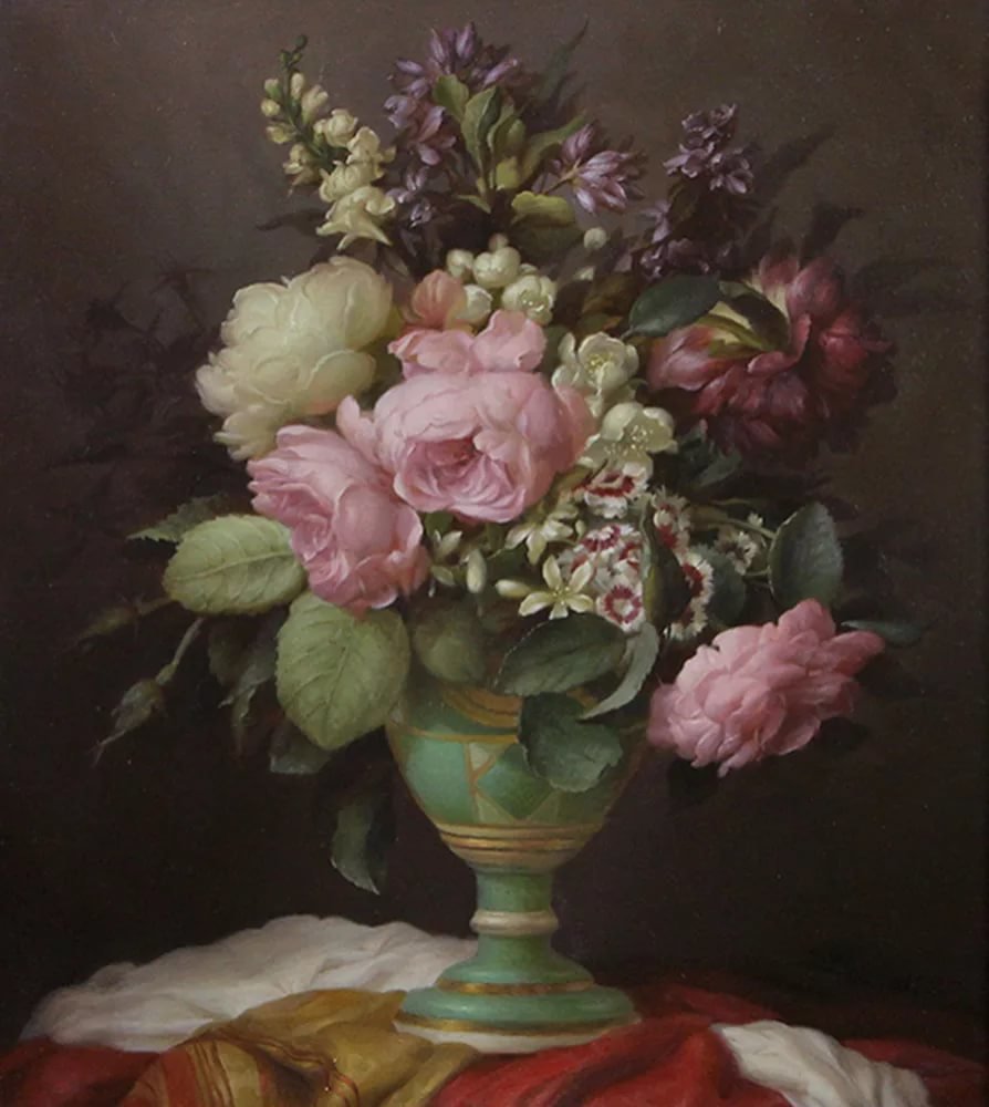 Теги: цветы букет картина ваза люпины гортензии натюрморт.