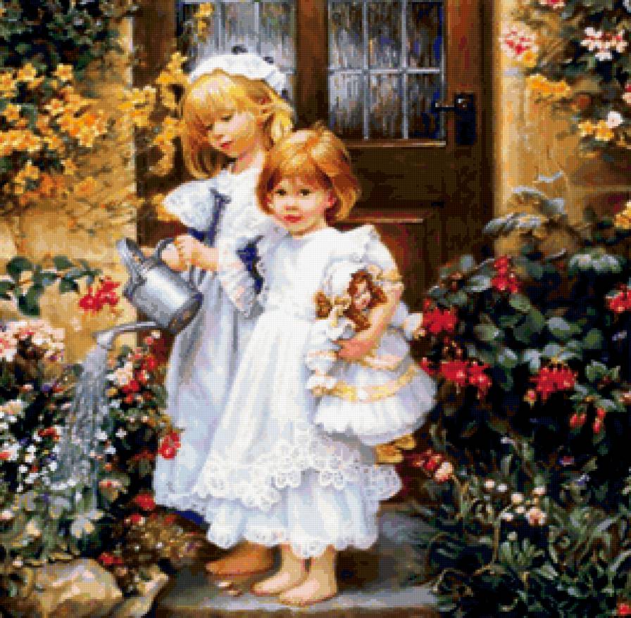 Комментарии к схеме вышивки «Дети в цветущем саду» (№250365)
