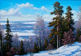 Теги: снег, пейзаж, картина, лес, домик, природа, зима, утро.
