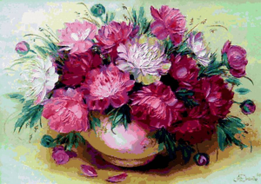 Схемы вышивки, похожие на «пионы в вазе» (№251481) по сюжету