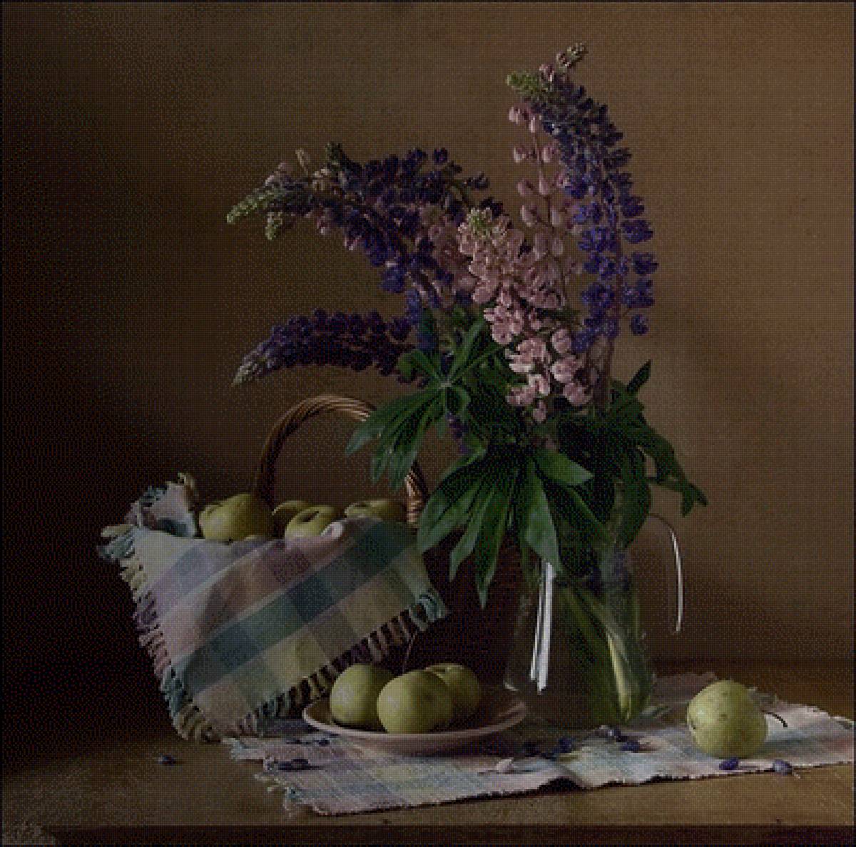 Теги: лето, яблоки, натюрморт, букет, цветы, бархатцы.