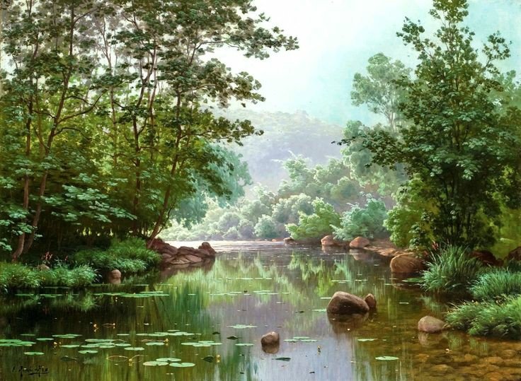 Теги: лето, домик, пейзаж, река.