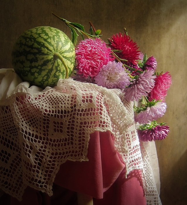 Схема вышивки «Астры и арбуз» (№2523519)