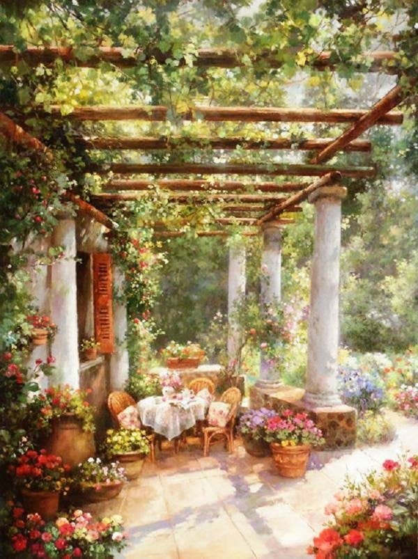 Теги: цветы, лето, уют, дворик, подсолнухи, краски.
