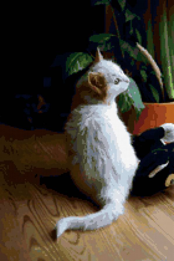 Схема вышивки «белый котёнок» (№254602)