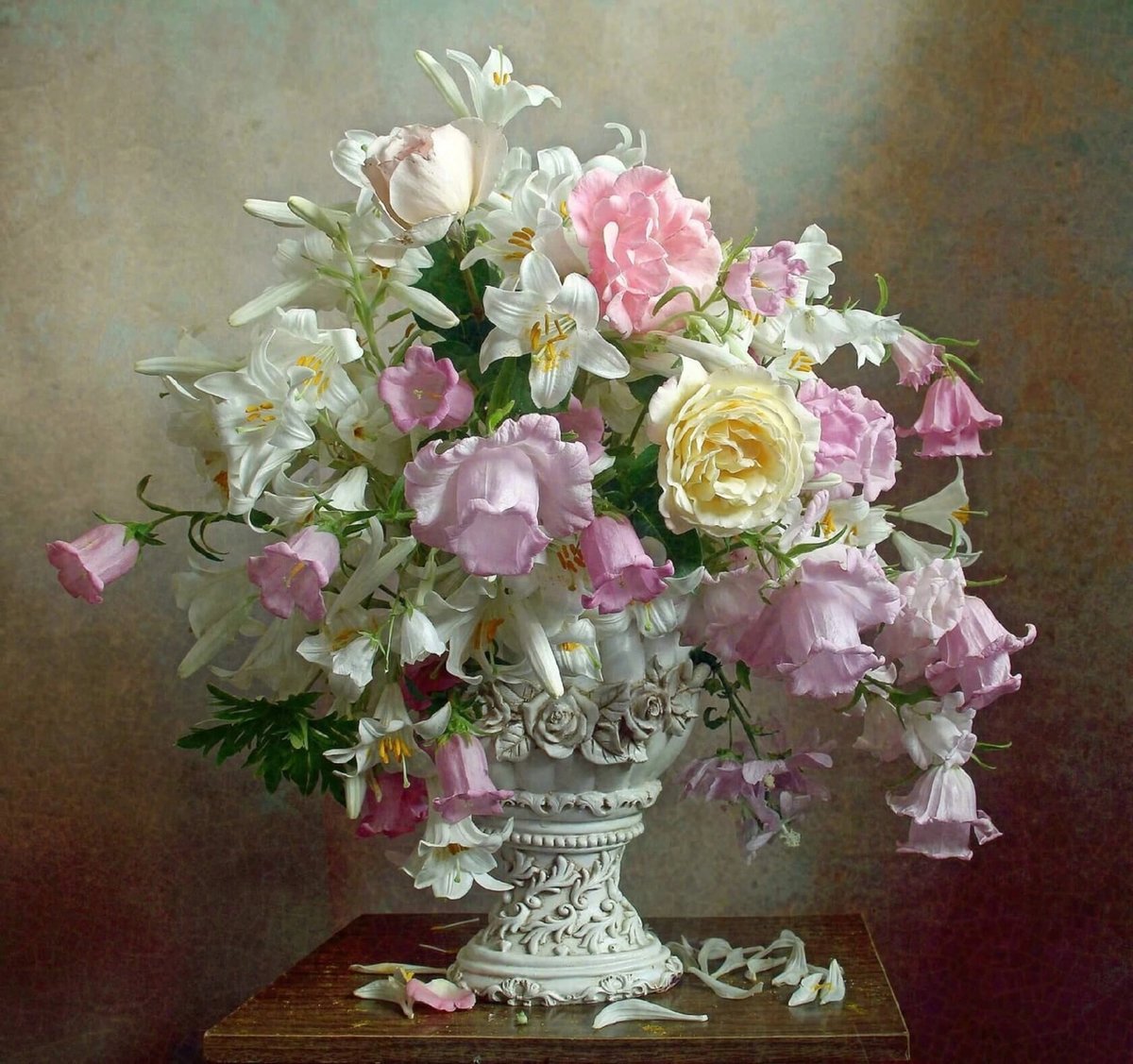 Теги: пионы, натюрморт, букет, белые цветы, розы, розовые цветы, бабочки.