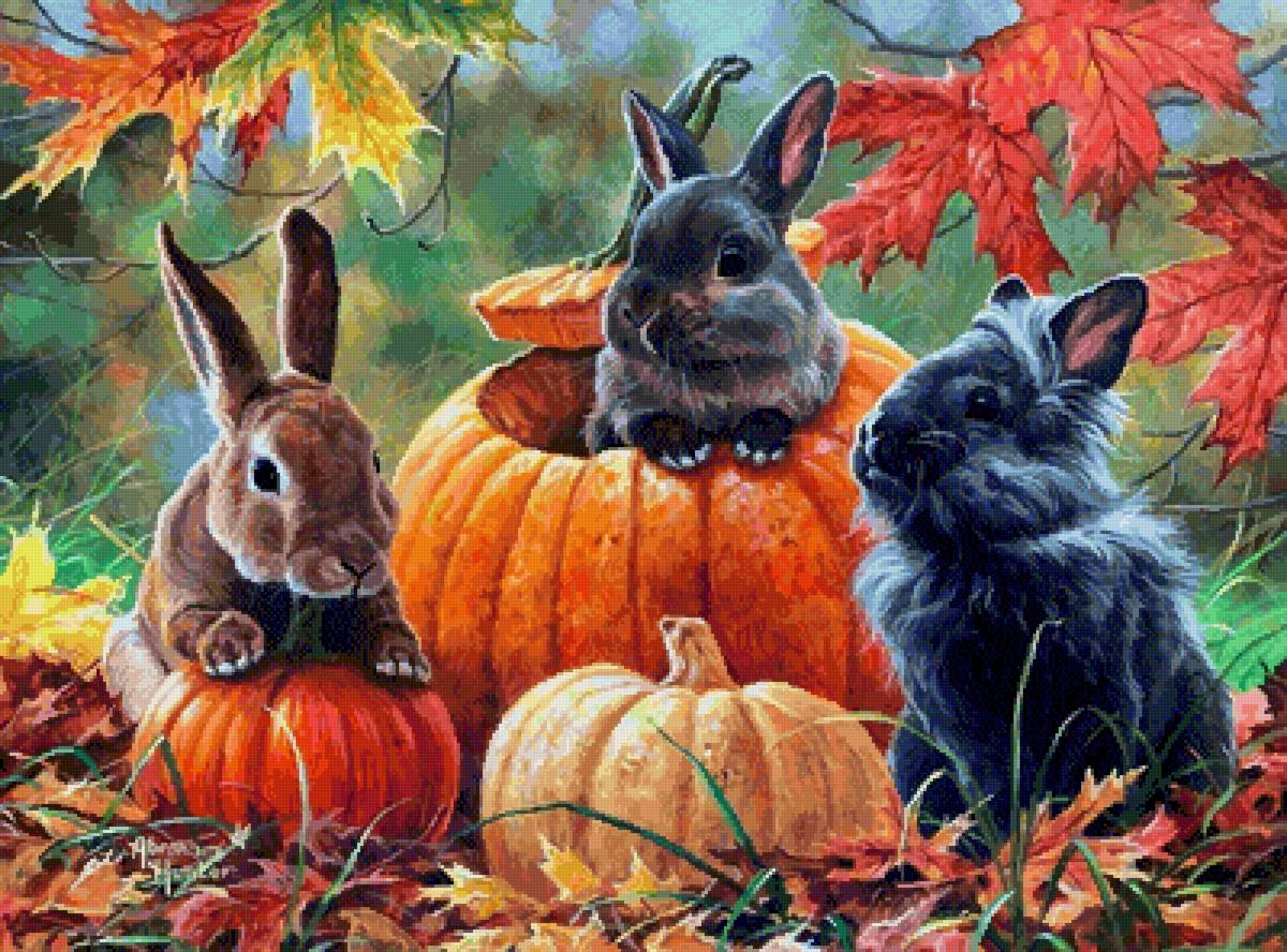 Схемы вышивки, похожие на «Кролики с тыквой» (№2560132) по сюжету