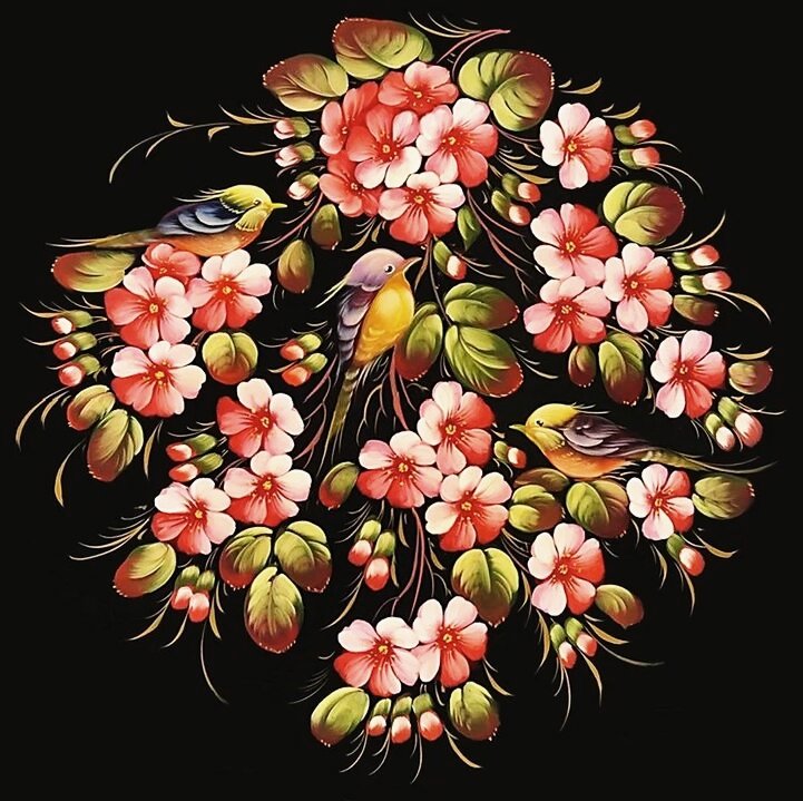 Теги: цветы, рябина, пионы, панно, роспись, птицы, ягодки, подушка.