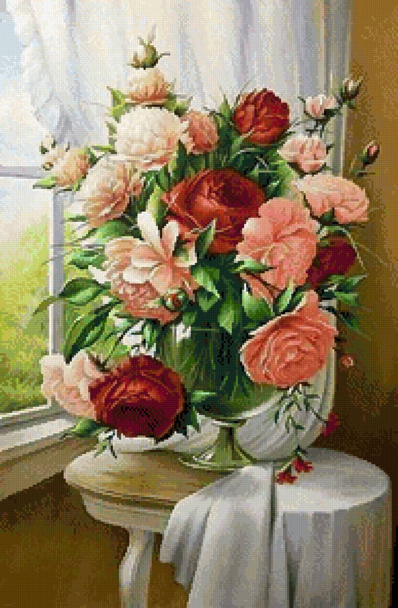 Теги: цветы, букет, картина., пионы, ваза, живопись.