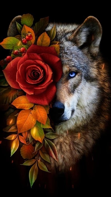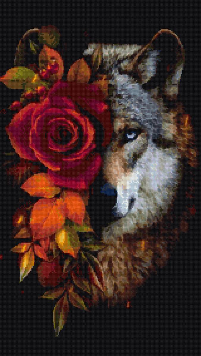 Схема вышивки «Волк с цветком» (№2604604)
