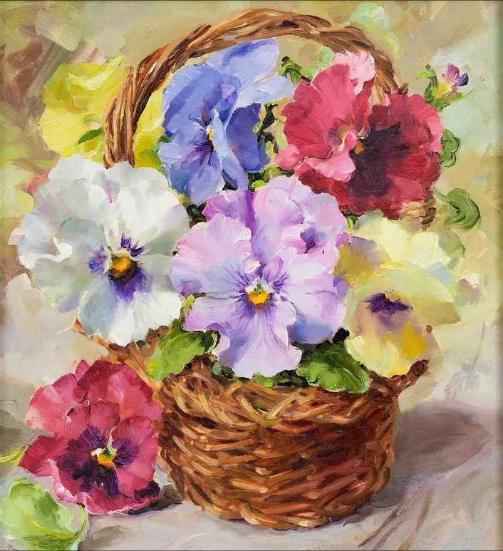 Теги: натюрморт, анютины глазки, весна, цветы.