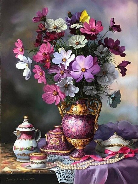 Теги: цветы, роза, картина, натюрморт, ваза, букет.