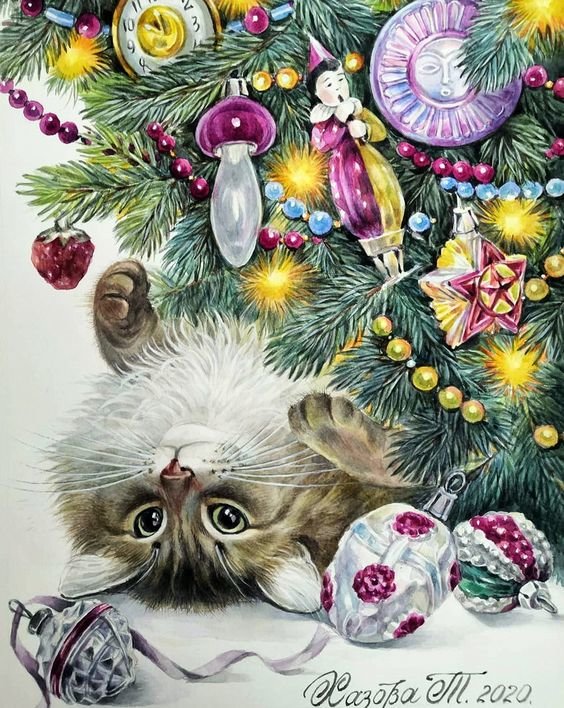 Теги: подарок, елка, новый год, кот, елочный шарик, мишка.