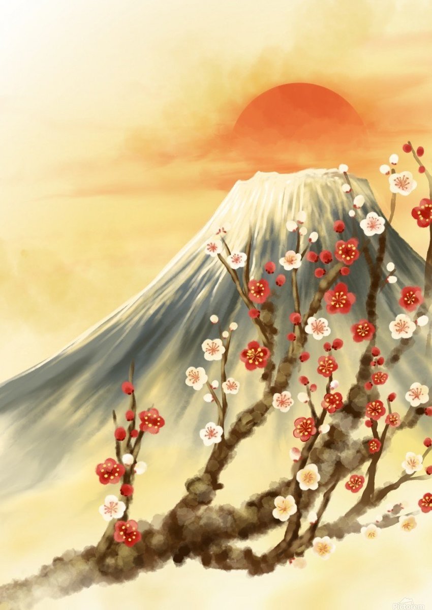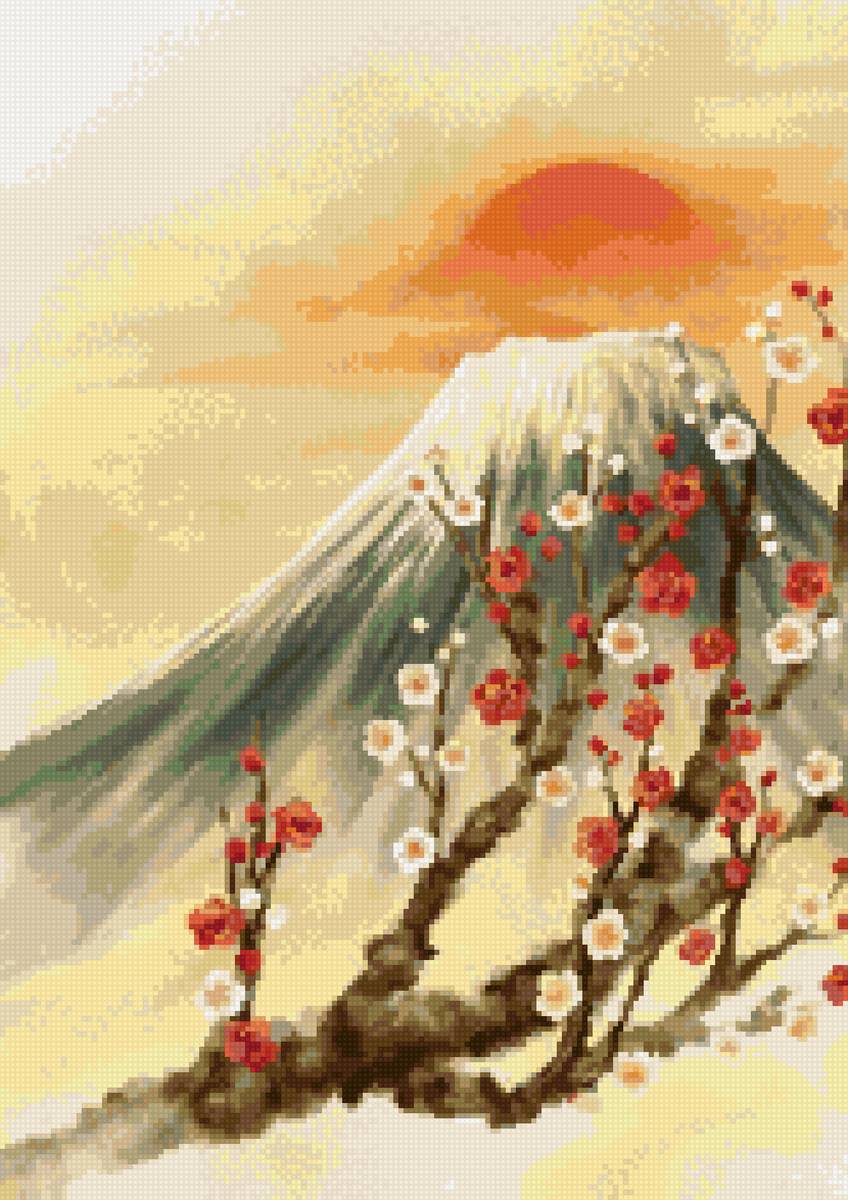 Схема вышивки «Ветка сакуры и Фудзи» (№2628223)