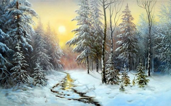 Теги: лес, зима, снег, живопись, животные, врлк, березы.