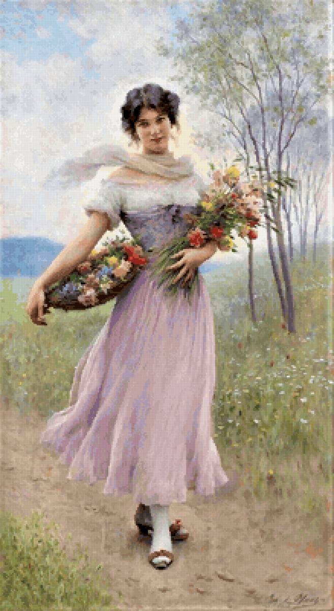 Схема вышивки «Девушка в сиреневом платье» (№2632957)