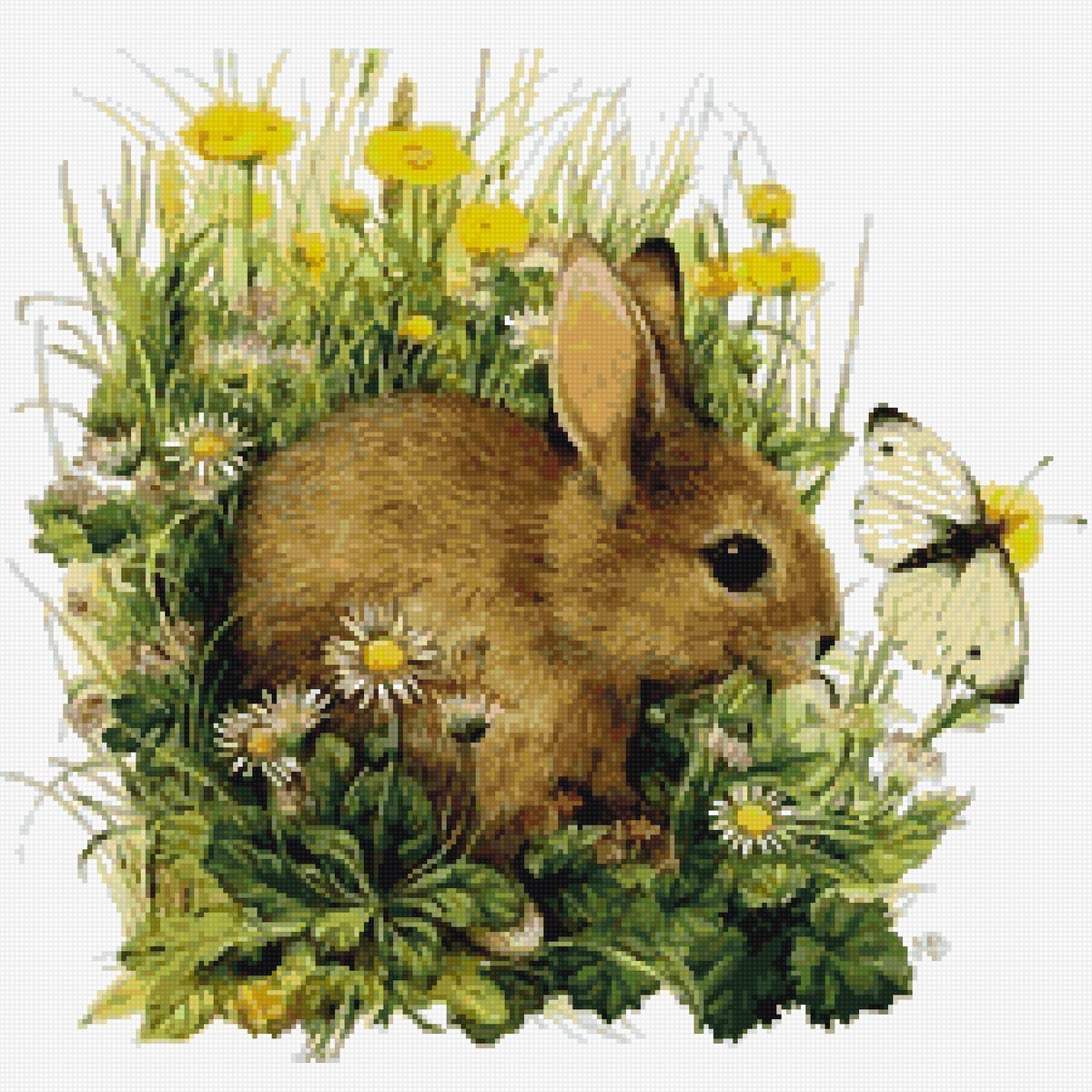 Схема вышивки «зайка и маргаритки» (№2658604)