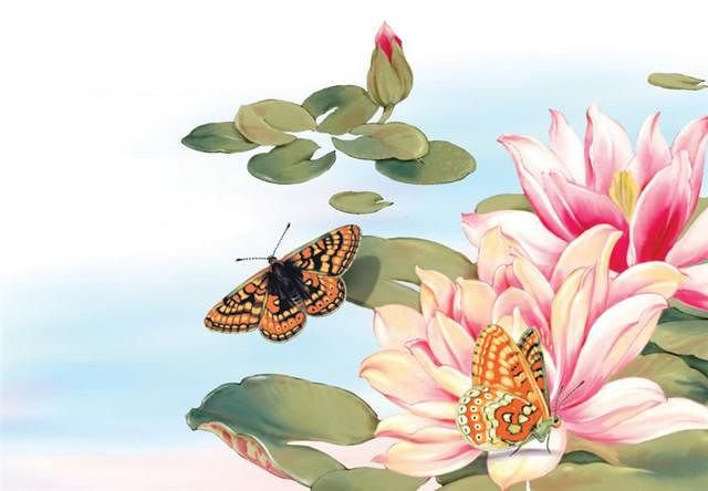 Теги: картина, подсолнухи, бабочка, цветы, природа.