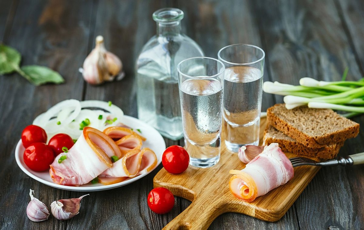Теги: огурцы, сало, натюрморт, селедка, водка.
